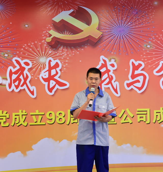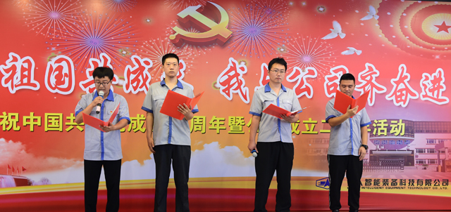 生產(chǎn)黨支部錢(qián)杭、李長(zhǎng)杰、朱子亮、王超朗誦《壯闊北人潮,奮進(jìn)新智能》