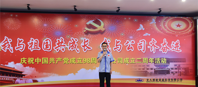 2019年7月1日,北人智能“我與祖國(guó)共成長(zhǎng)、我與公司齊奮進(jìn)”慶祝中國(guó)共產(chǎn)黨成立98周年暨公司成立兩周年活動(dòng)隆重舉行。北人智能通過(guò)舉行升旗儀式、演講朗誦比賽、2018-2019年度黨建優(yōu)秀單位和個(gè)人表彰儀式和黨委書(shū)記專(zhuān)題黨課等活動(dòng)內(nèi)容,熱烈慶祝中國(guó)共產(chǎn)黨成立98周年、慶祝北人智能成立兩周年。