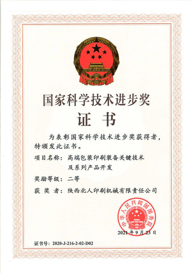 北人智能公司黨委副書記、總經(jīng)理李彥鋒,總工程師薛志成作為主要完成人參與完成的“高端包裝印刷裝備關(guān)鍵技術(shù)及系列產(chǎn)品開發(fā)”項目,獲國家科學(xué)技術(shù)進步獎二等獎!